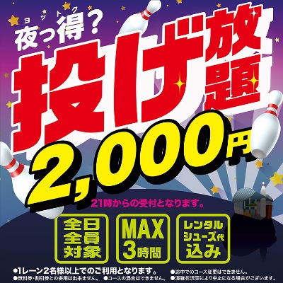 「夜得投げ放題」スタートしました。最大3時間ボウリングが投げ放題コースになり...